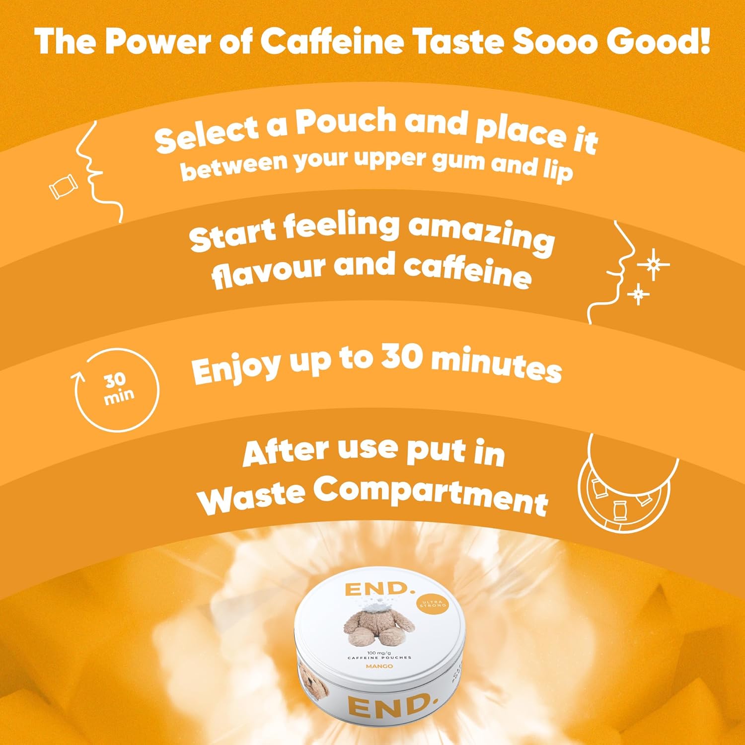 Caffeine Energy Pouches offer a clean, fast-acting energy boost—no sugar, no mess, just bold flavour and focused fuel whenever you need it. Ideal for busy days, tough workouts, or conquering the afternoon slump, each pouch provides a smooth, controlled dose of caffeine in a discreet, easy-to-use format. Completely free from tobacco and nicotine, these energising pouches deliver a pure clean, private burst of energy you can enjoy anytime.
